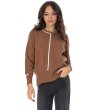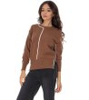 Pulover maro de damă cu dungi contrastante AIMELIA