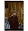 Pulover maro de damă cu motive florale