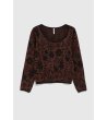 Moodo Pulover maro de damă cu motive florale Decolteu rotund