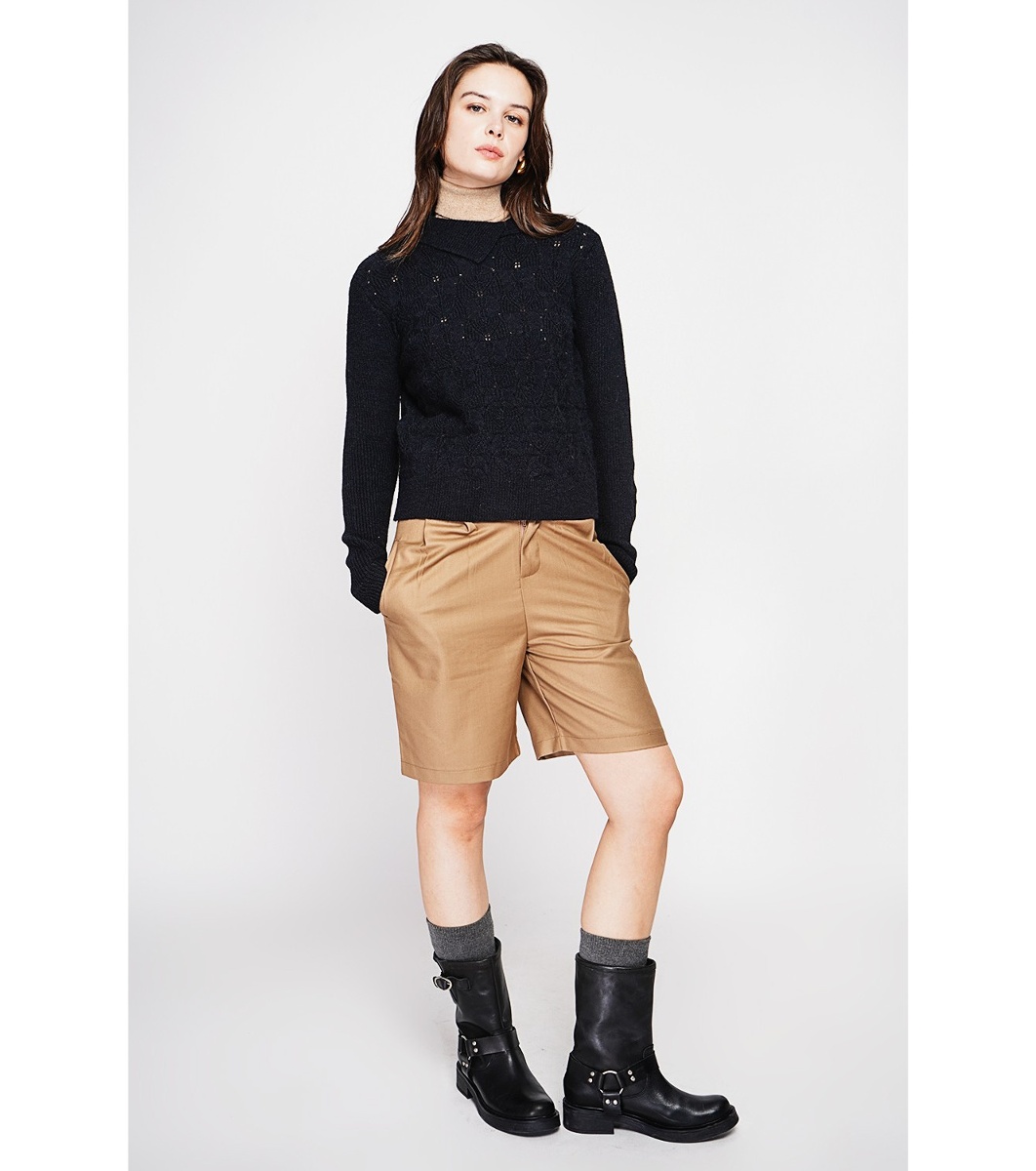 C&Jo Pulover negru de damă cu broderie în față Decolteu rotund