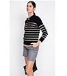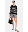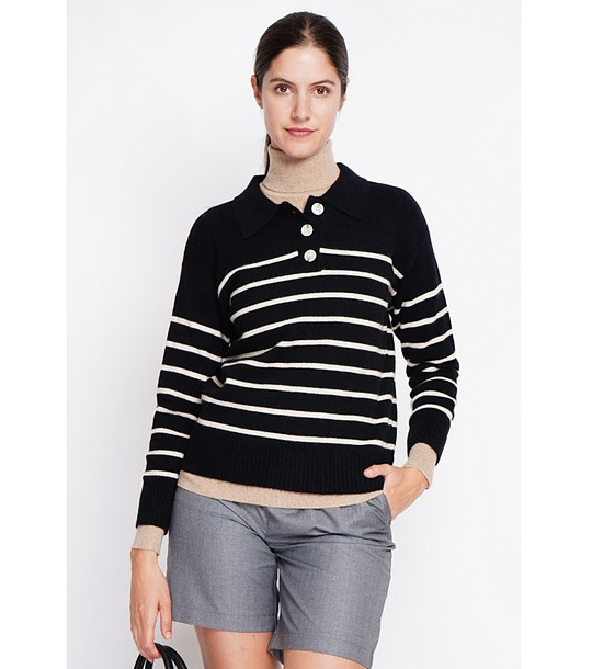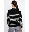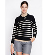 Assuili Pulover negru de damă cu dungi albe Decolteu în V cu guler și nasturi