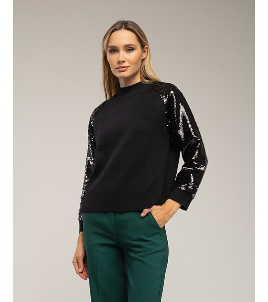 Pulover negru de damă cu paiete pe mâneci