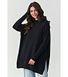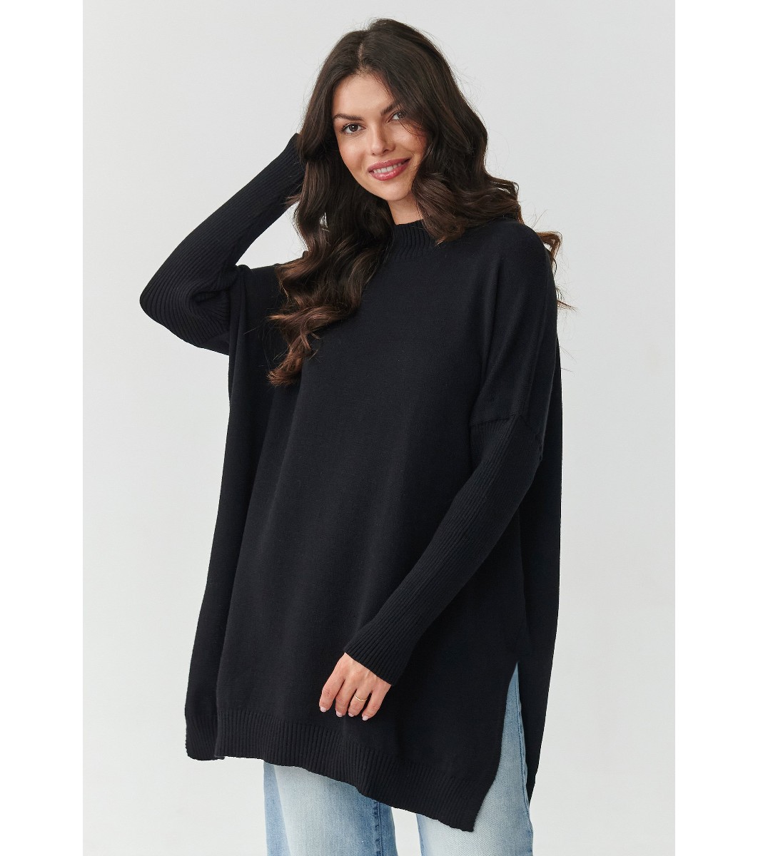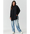 Makadamia Pulover negru supradimensionat de damă, cu crăpături Decolteu înalt