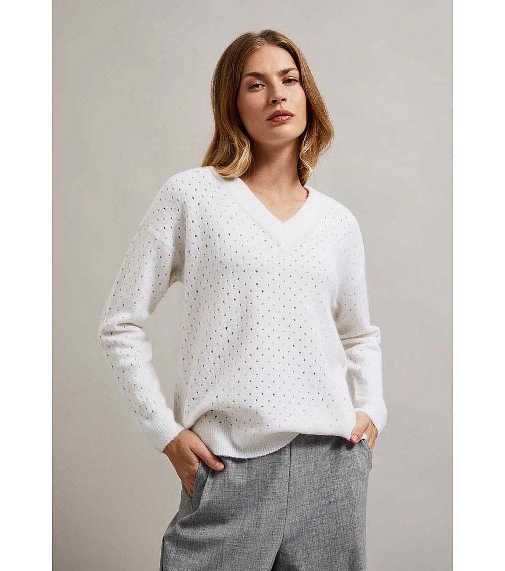 Moodo Pulover perforat Lota pentru femei în alb închis Decolteu în V