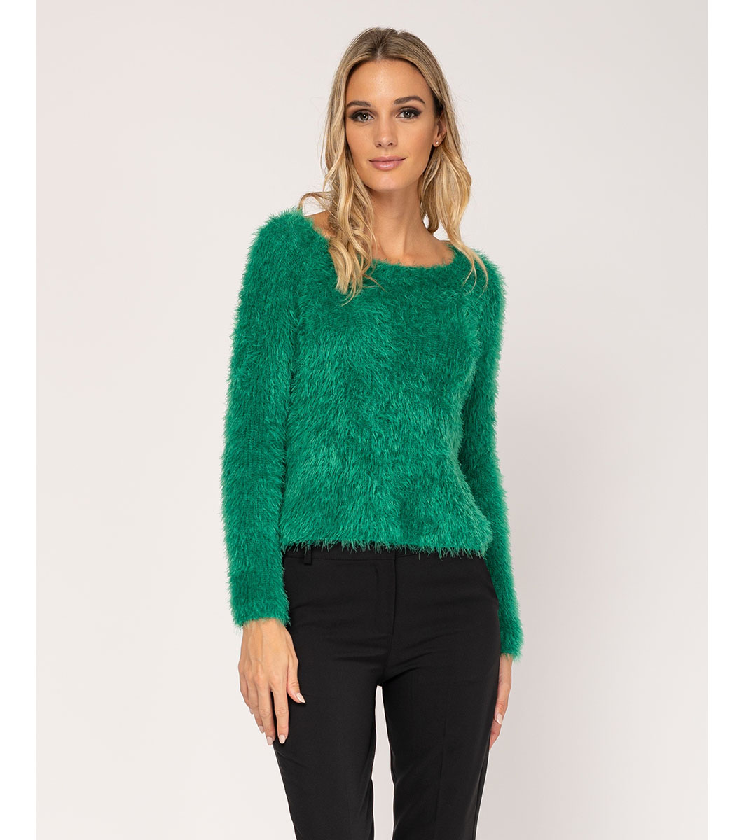 Pulover pufos verde pentru femei Darlene