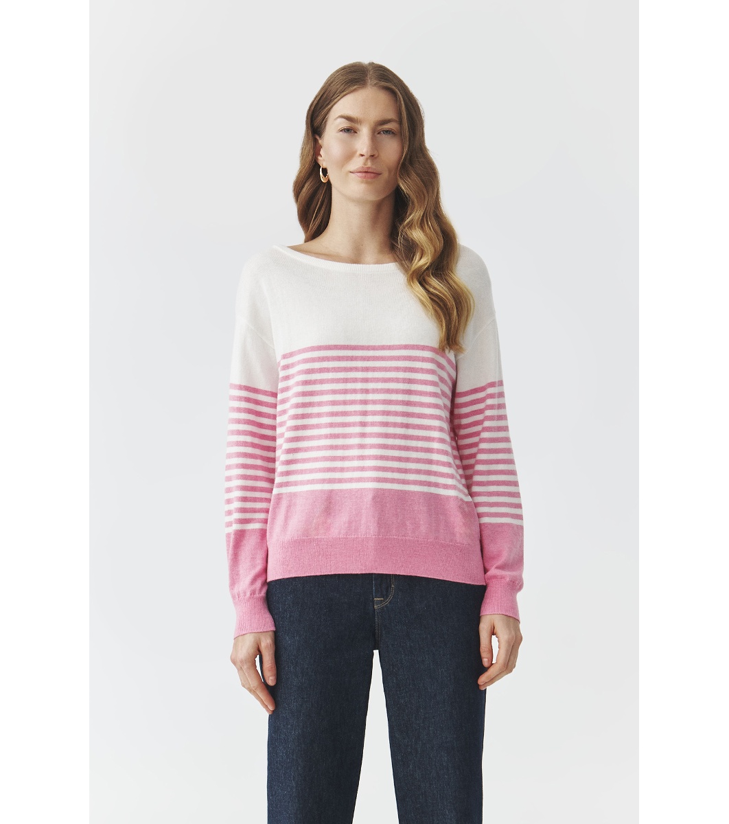 Tatuum Pulover roz cu dungi pentru femei Rachela Pulover tricotat pentru femei din bumbac, croială dreaptă, cu mâneci lungi.