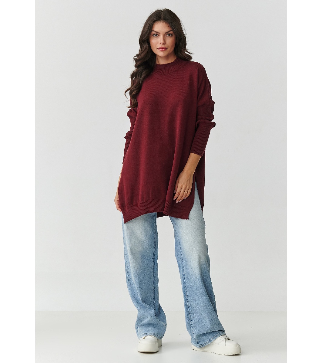 Makadamia Pulover supradimensionat de damă, culoare vișinie Decolteu înalt