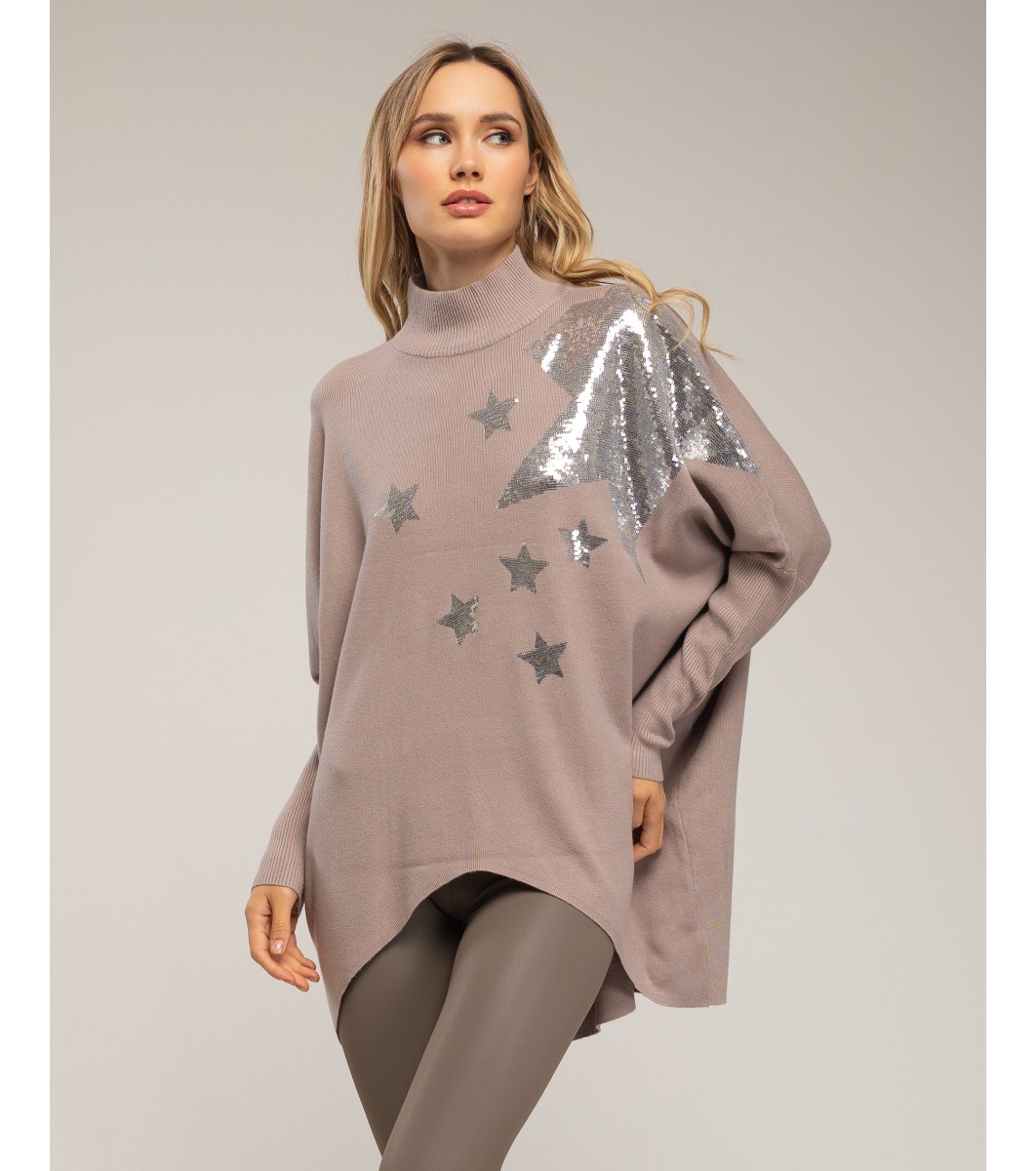Pulover supradimensionat de damă, maro, cu decorațiuni argintii
