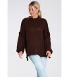 Figl Pulover supradimensionat pentru femei, maro închis, Ines Decolteu înalt