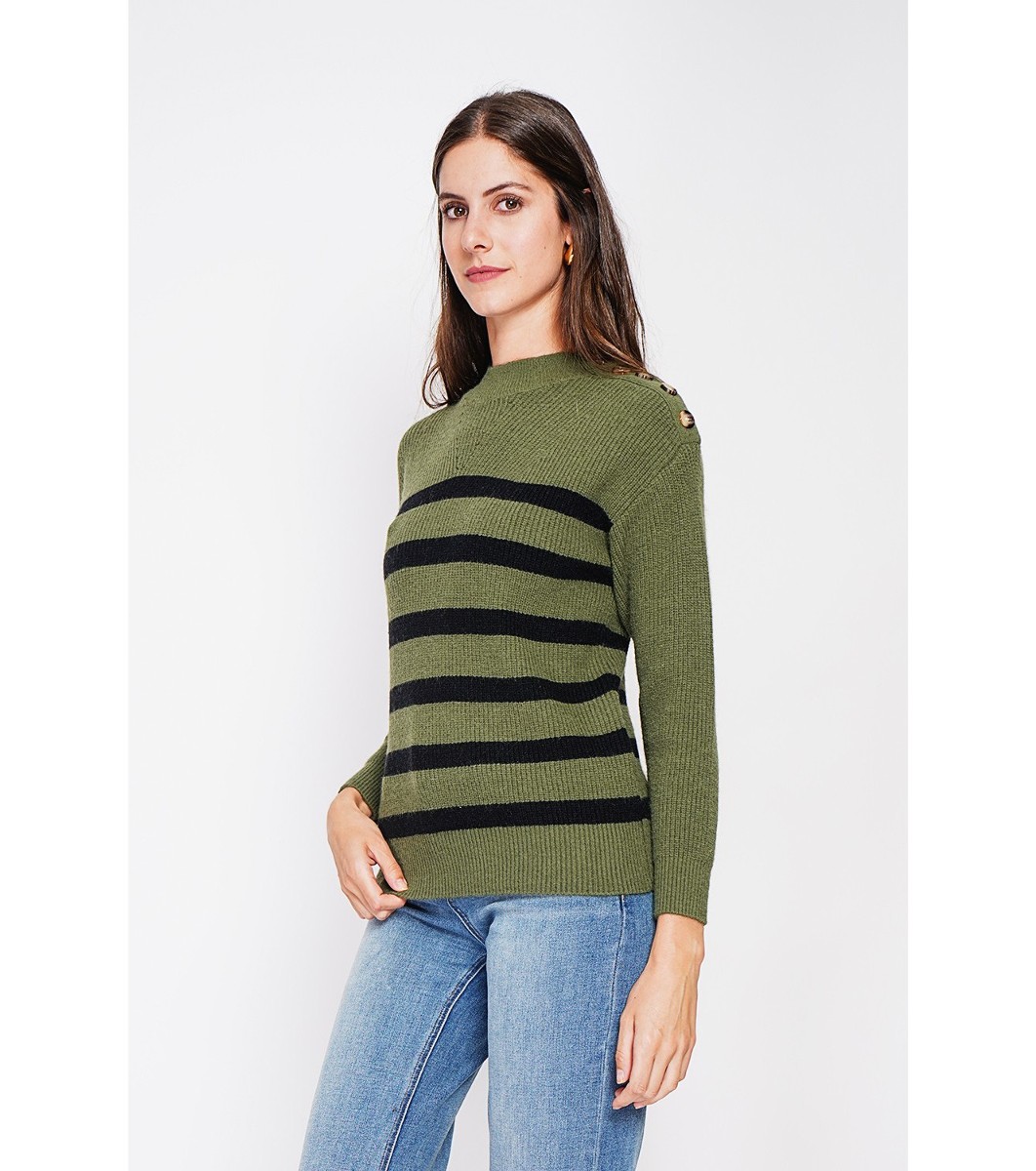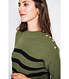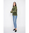 C&Jo Pulover verde de damă cu dungi negre Decolteu rotund