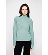 Pulover verde de damă cu garnitură neagră pe mâneci