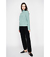 C&Jo Pulover verde de damă cu garnitură neagră pe mâneci Guler polo