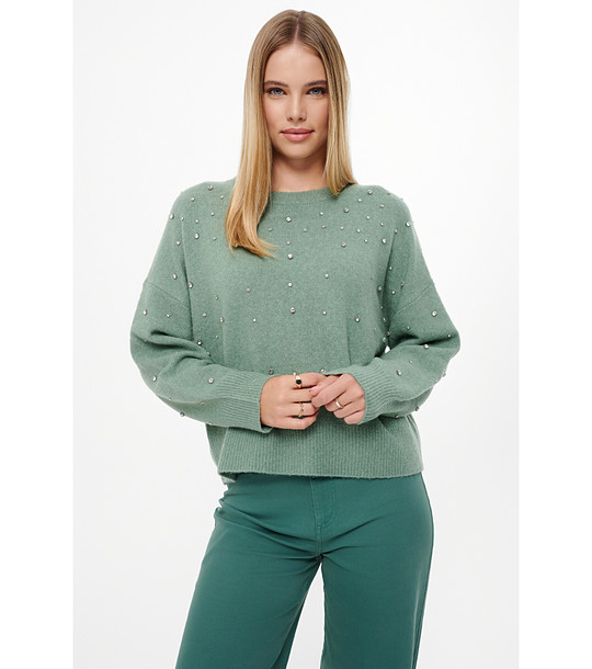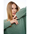 Pulover verde de damă cu pietricele și lână