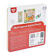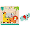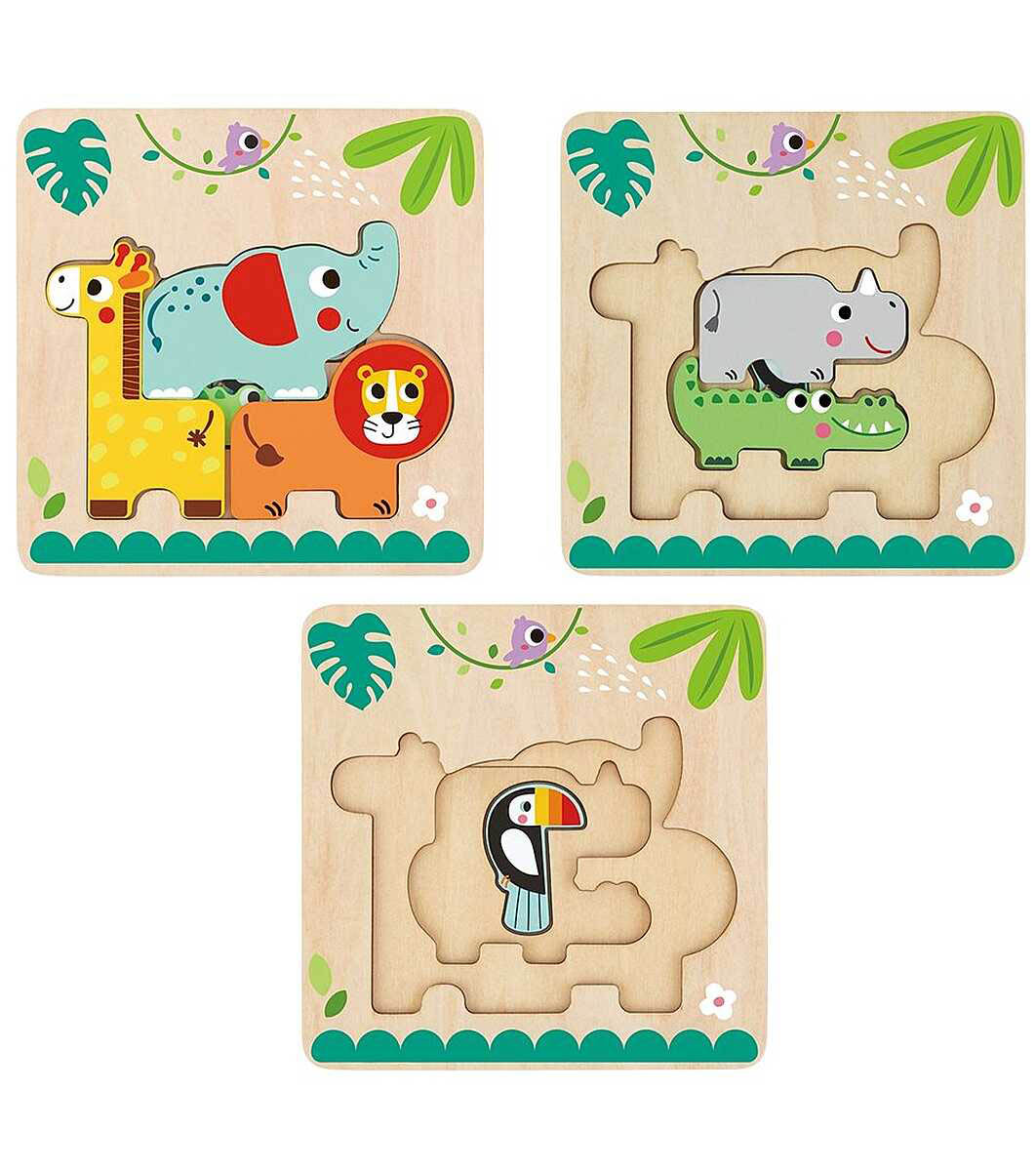 1-2 ani, 2-3 ani, 3-5 ani, 5-7 ani Puzzle-ul cu mai multe straturi Animals este format din 7 elemente.  Sub cele trei straturi, 6 animale apar secvenţial: papagal, leu, elefant, girafă, hipopotam și crocodil. Animalele sunt imprimate pe ambele fețe și au o dimensiune potrivită pentru mâinile mici. În plus, pot sta în picioare. In timp ce cunoaste locuitorii junglei si incearca sa loveasca formele, micutul isi antreneaza abilitatile motorii si coordonarea mana-ochi Dimensiunea puzzle: 17 x 17 x 1,6 cm Grosimea animalului: 0,4 cm. Răsfoiți toate jucăriile din lemn de pe site-ul nostru.