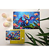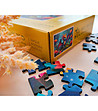 Un puzzle frumos din lemn cu 150 de piese standard într-o cutie de carton.