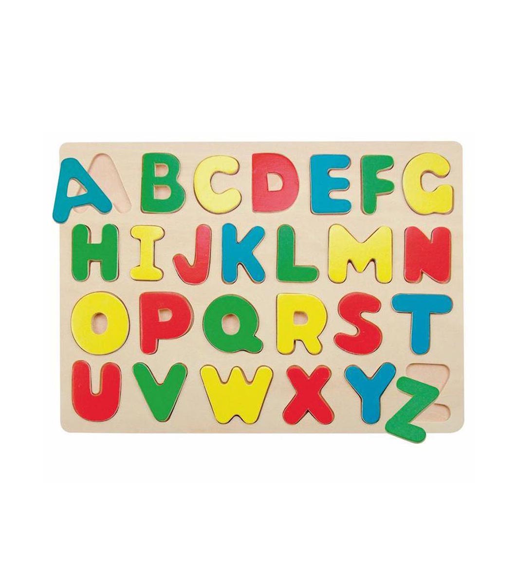 Puzzle din lemn cu litere colorate pentru copii curioși.