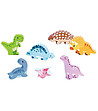 Șapte dinozauri drăguți așteaptă ca cei mici să-și găsească locurile și să completeze decorul preistoric.