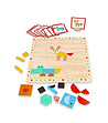 Copilul trebuie să deseneze una dintre cărțile incluse în set și să aranjeze figura din poza.