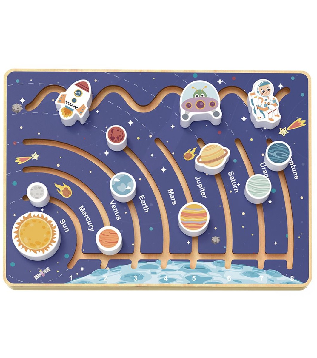 Oferă-i copilului tău o aventură spațială captivantă cu labirintul din lemn „Spațiu” de la Tooky Toy - o jucărie distractivă și educativă, creată special pentru cei mai mici și curioși!