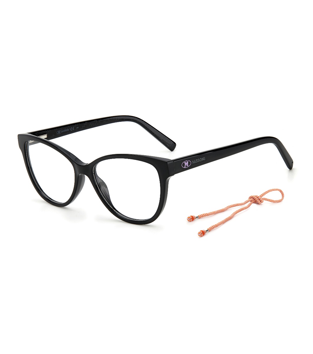 M Missoni Rame de ochelari de vedere negre pentru femei cu șnur portocaliu
