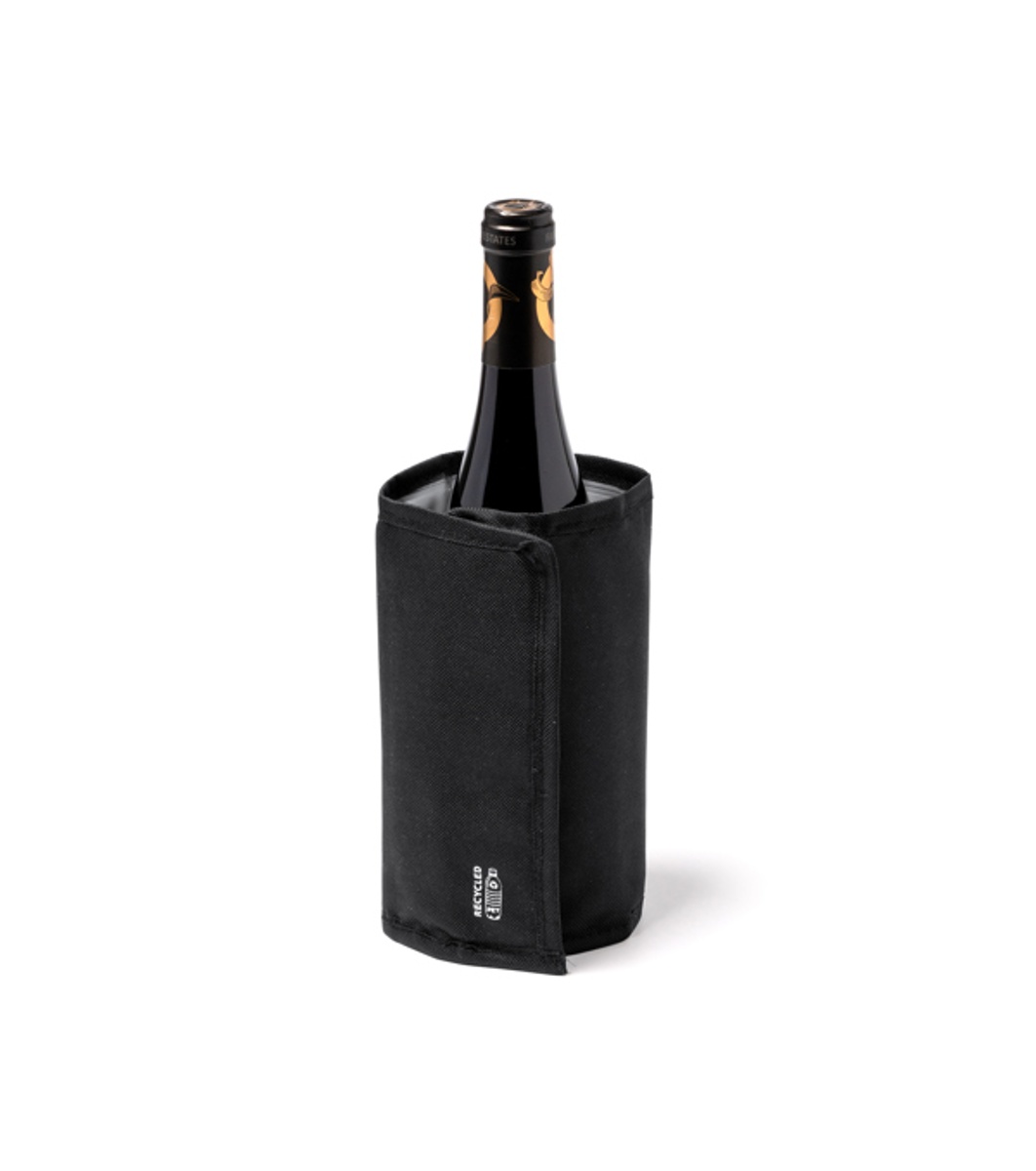 Husă pentru răcitor de sticle fabricată din RPET, cu închidere reglabilă cu velcro.