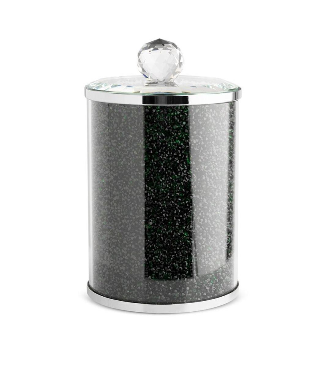 Eurofirany Recipient din sticlă cu capac și cristale verzi-negre 10x17 cm Înălțime: 17 cm