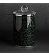 Recipient din sticlă cu capac și cristale verzi-negre 10x17 cm