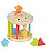 Sortator din lemn cu șase găuri diferite cu șase forme de bază. Copilul are șase forme în culori diferite, pe care va trebui să le împingă în găurile potrivite pentru ele. Când copilul reușește să pună toate formele în sortator, poate întoarce roata și o aude zdrănnind. Una dintre pereții despărțitori este detașabilă pentru a oferi acces ușor la matrițe. Jucaria este potrivita pentru cei mici aflati in primele incercari de sortare si cuibarire. Ajută la dezvoltarea abilităților motorii fine și a dexterității copilului dumneavoastră și, de asemenea, îi va introduce în diferite culori și forme.