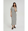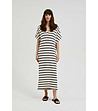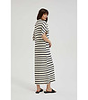 Rochie Adolfina bej din tricot fin cu dungă neagră