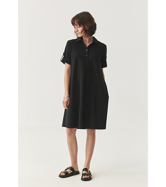 Tatuum Rochie Elie neagră din bumbac Rochie dreaptă până la genunchi, cu guler cămașă și mâneci scurte.
