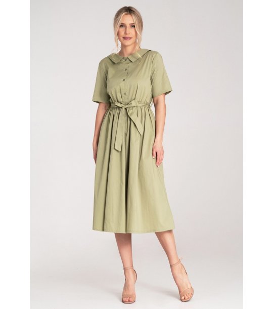 Rochie Vivian Green din bumbac cu nasturi