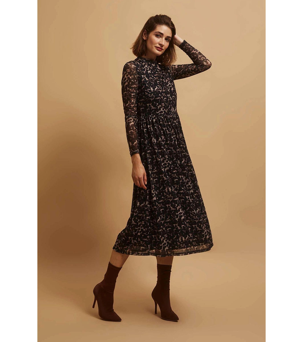 Moodo Rochie aerisită în negru și bej Marisa Decolteu rotund