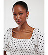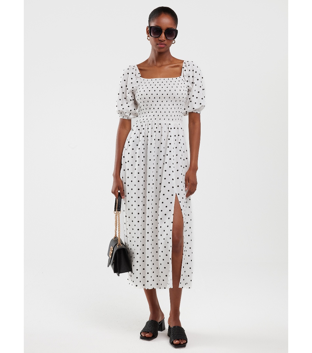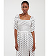Rochie albă cu buline, încrețituri și crăpătură SOTINI