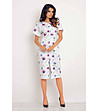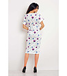 Rochie albă cu imprimeu mov și albastru