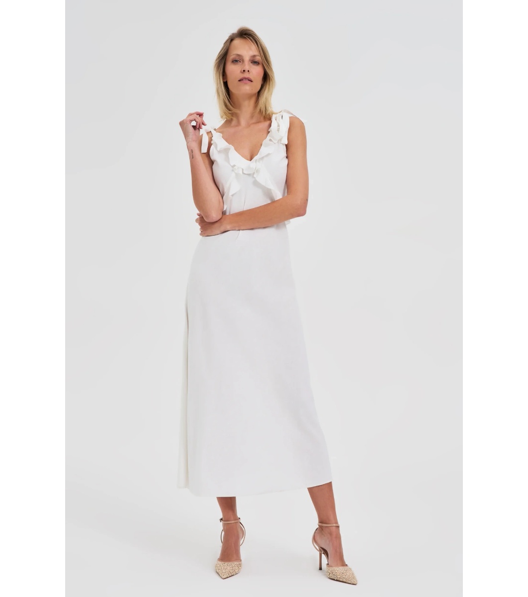 Moodo Rochie albă de vară Decolteu în V cu volane
