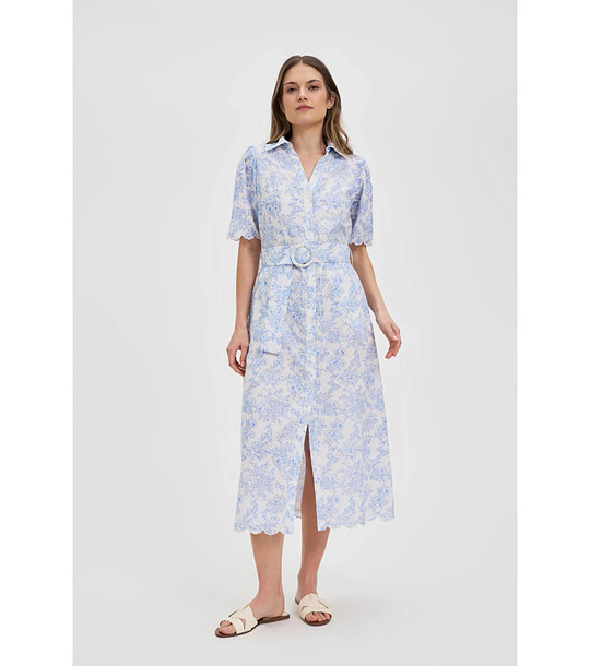 Rochie albă din bumbac cu imprimeu floral albastru