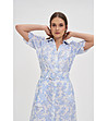 Moodo Rochie albă din bumbac cu imprimeu floral albastru Guler clasic