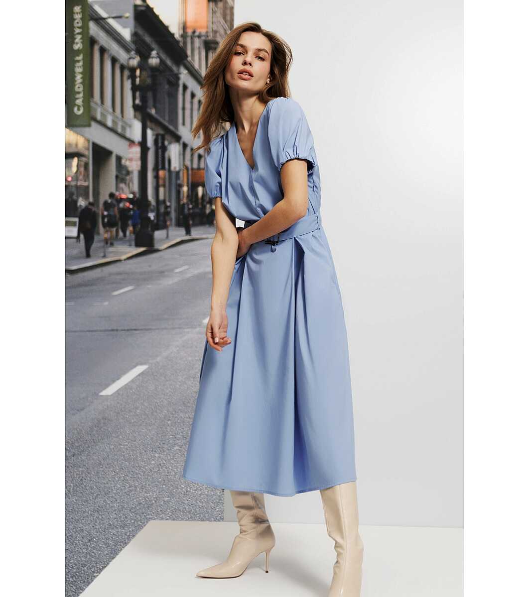 Moodo Rochie albastru deschis cu centura Decolteu în V