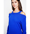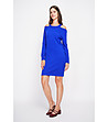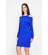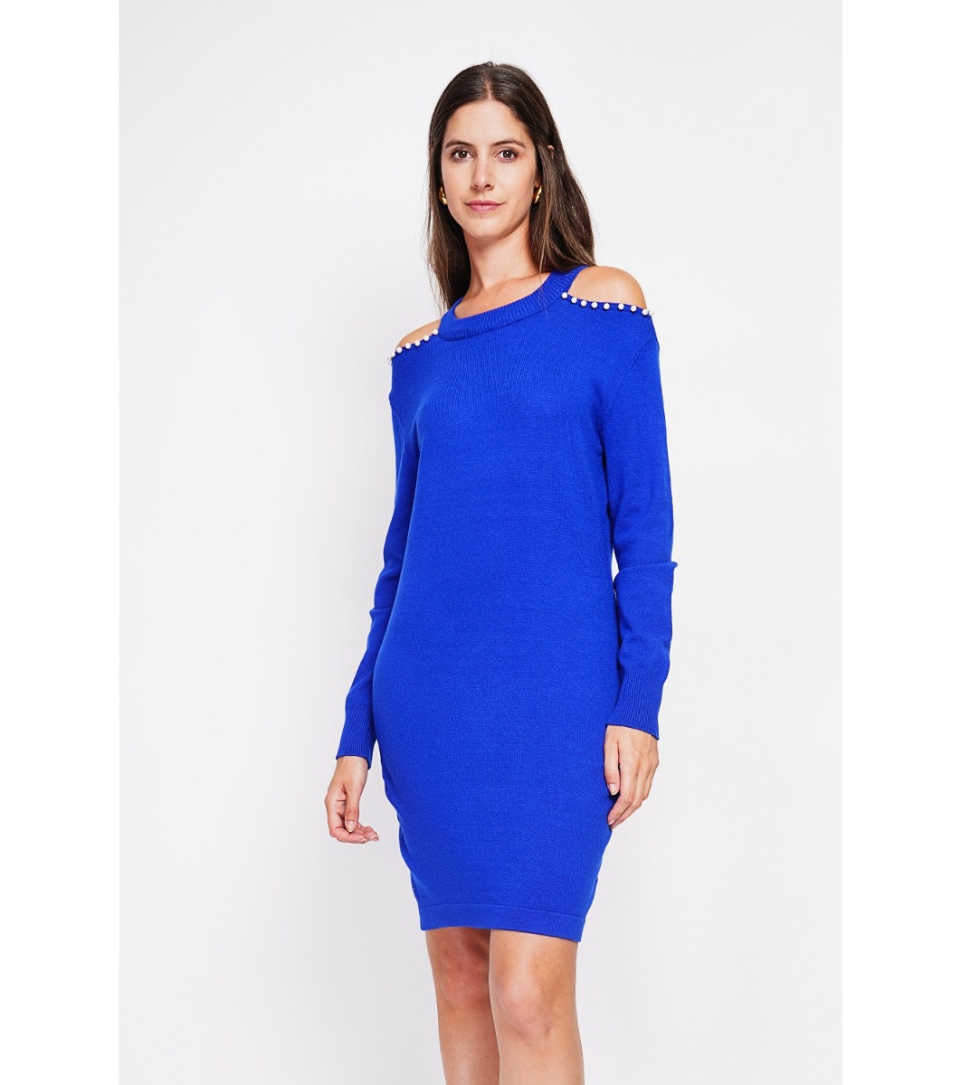 William de Faye Rochie albastru regal cu umerii goi și perle Rochie tricotată fin cu perle