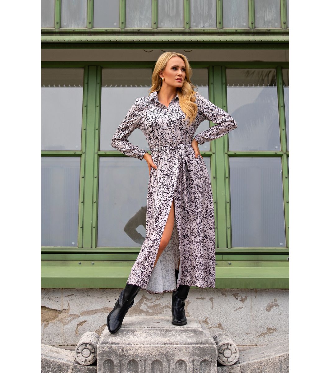 Rochie alb-negru cu imprimeu și nasturi Flora