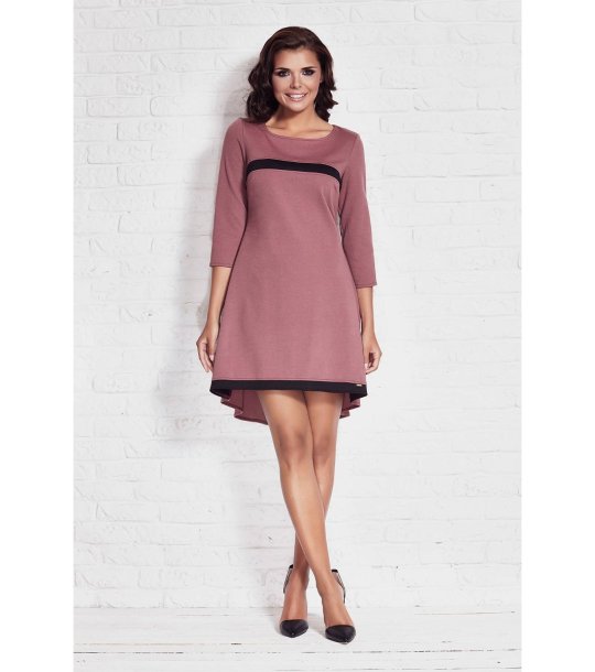 Infinite you Rochie asimetrică de culoare roz cenușiu cu garnitură neagră Decolteu rotund