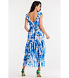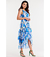 Rochie asimetrică din șifon în alb și albastru Ofelia