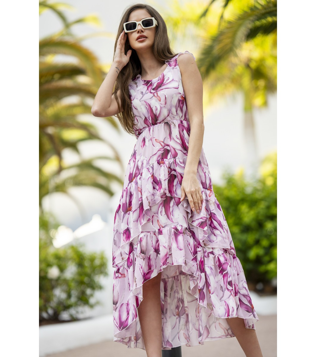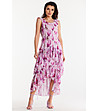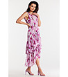 Rochie asimetrică din șifon roz și ciclam Ofelia