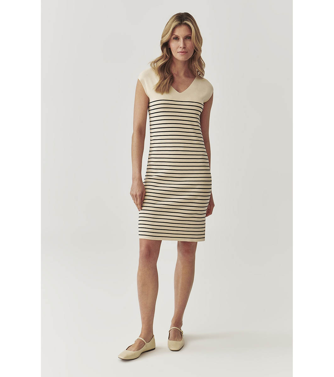 Tatuum Rochie bej Nikalimo cu dungi negre contrastante Decolteu în V