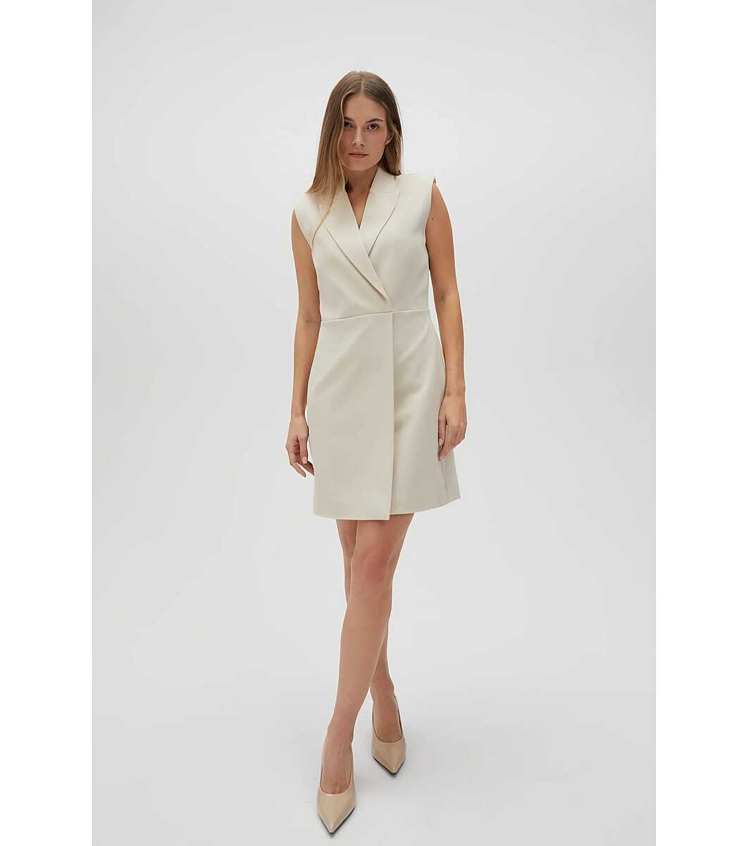 Moodo Rochie bej deschis fără mâneci Decolteu în V cu guler și revere