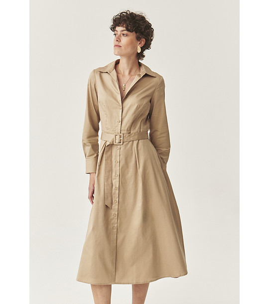Tatuum Rochie bej din bumbac cu curea Sanote Rochie cu mâneci lungi și guler clasic.