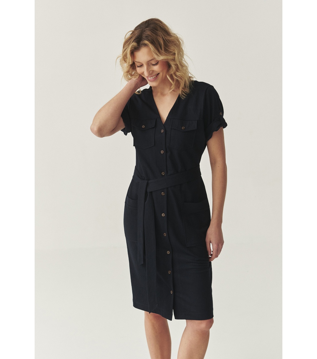 Tatuum Rochie bleumarin cu curea Sanoma Rochie până la genunchi cu decolteu în V.
