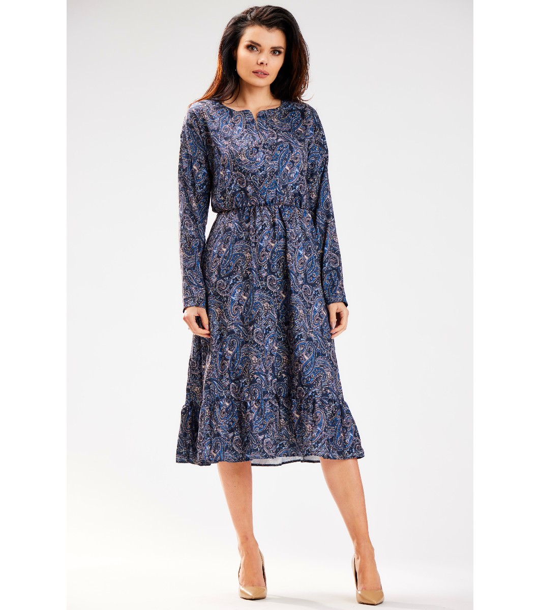 Awama Rochie bleumarin cu imprimeu paisley Decolteu rotund