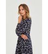 Rochie bleumarin cu mâneci lungi și imprimeu floral