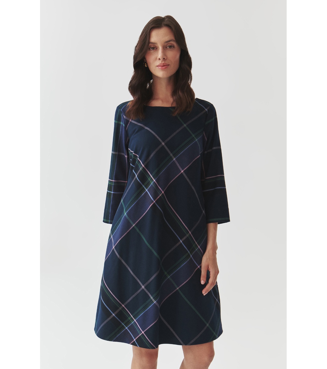 Tatuum Rochie bleumarin în carouri Gracy Decolteu tip barcă